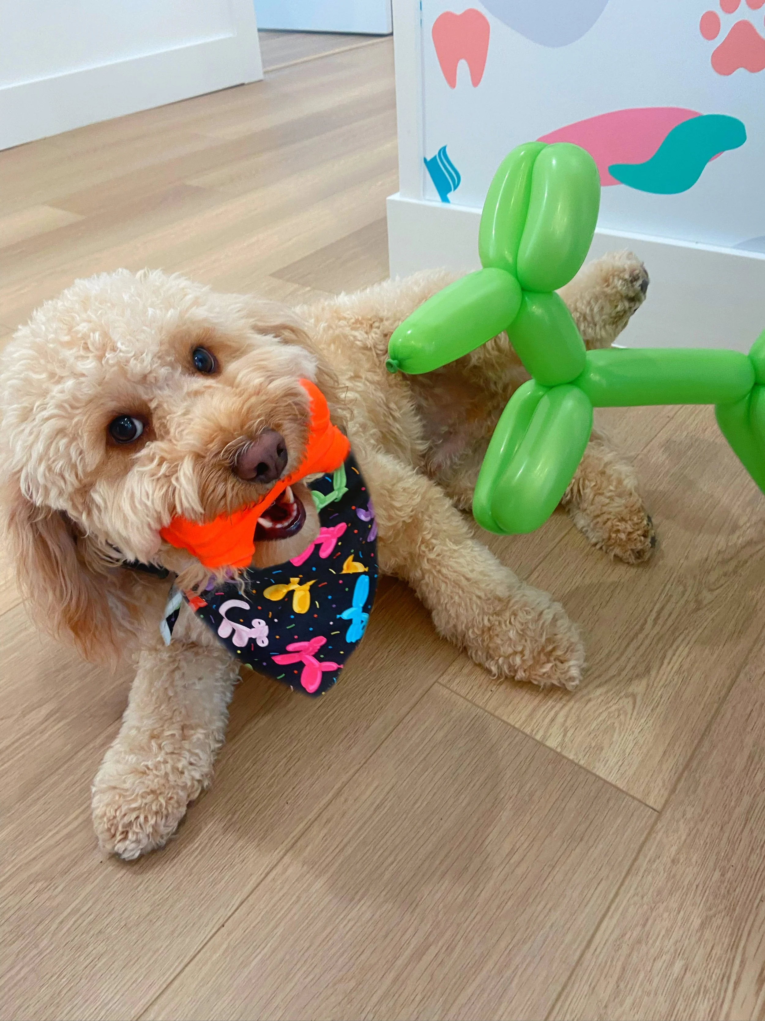 Teddy is our sweet, four-legged employee and therapy pup in training! He's a mini Goldendoodle and excited to help our patients enjoy a pawsitive experience while visiting Shawnee Pediatric Dentistry.